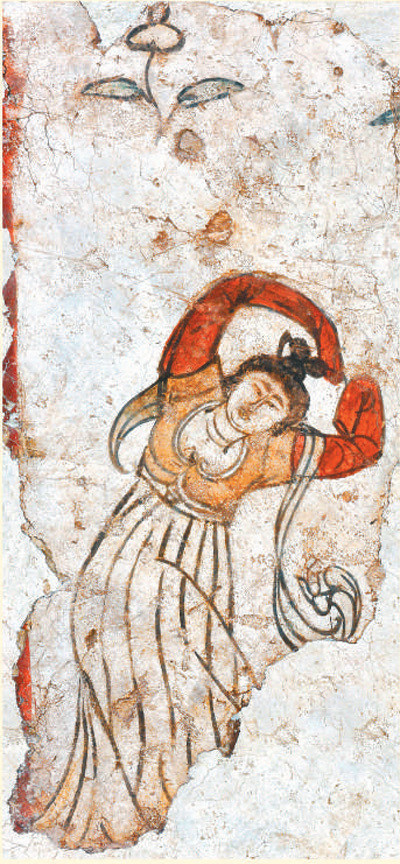 在东海大学举办的这次展览新增了《出行仪仗图》《舞女图》等精彩壁画图像。其中,《出行仪仗图》展现了唐人华丽出行的场景,画中彩轿、骏马、人物皆巧扮盛装,盛世风貌令人赞叹;《舞女图》中,画家以流畅的线条、绚丽的色彩描绘一位舞者充满青春气息的曼妙舞姿,富有感染力与共鸣感。